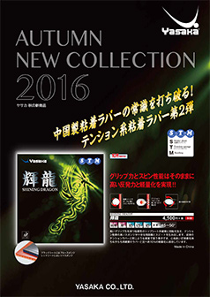 平素よりヤサカ卓球用品をご利用いただき誠にありがとうございます。 このたび、2016年秋の最新商品リーフレットを掲載いたしました。ぜひ開いてご覧ください!(PDF形式(2.4MB)となっております) また、本ホームページでも追って各商品の詳細を掲載い...